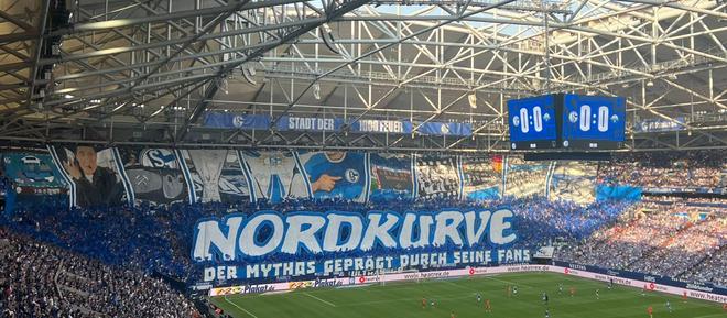 沙爾克04地處德國(guó)魯爾工業(yè)區(qū),球迷氛圍狂熱。球隊(duì)主場(chǎng)是位于蓋爾森基興的費(fèi)爾廷斯競(jìng)技場(chǎng)。這座球場(chǎng)因沙爾克球迷助威時(shí)的狂熱氛圍被譽(yù)為“藍(lán)色堡壘”,是整個(gè)歐洲足壇都公認(rèn)的魔鬼主場(chǎng)。