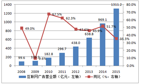 中國互聯(lián)網(wǎng)廣告規(guī)模增長迅速,15年超千億