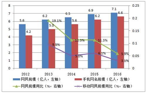 互聯(lián)網(wǎng)廣告市場經(jīng)歷近 10 年高速發(fā)展后,正式市場規(guī)模已經(jīng)超過千億,在廣告行業(yè)占據(jù)半壁江山,成為廣告行業(yè)增長主要驅(qū)動力。根據(jù)中國產(chǎn)業(yè)信息網(wǎng),2015 年互聯(lián)網(wǎng)廣告營業(yè)額達(dá)到 1311.2 億,同比增長高達(dá) 35.3%,遠(yuǎn)高于行業(yè)平均增速。中國網(wǎng)民基數(shù)龐大,互聯(lián)網(wǎng)廣告擁有龐大市場,根據(jù)中商情報(bào)網(wǎng)訊,截至 2016 年 6 月,我國網(wǎng)民規(guī)模達(dá)到 7.10 億,半年共計(jì)新增網(wǎng)民 2132 萬人,半年增長率為 3.1%,較 2015 年下半年增長率有所提升。互聯(lián)網(wǎng)普及率為 51.7%,較 2015 年底提升了 1.3 個百分點(diǎn)。隨著手機(jī)上網(wǎng)成為潮流,網(wǎng)民紛紛移動互聯(lián)網(wǎng)化,截至 2016 年 6 月,我國手機(jī)網(wǎng)民規(guī)模達(dá)到 6.56 億,較 2015 年底增加 3656萬人,手機(jī)網(wǎng)民占網(wǎng)民比重高達(dá) 92.5%,用戶移動化幾乎已經(jīng)完成。