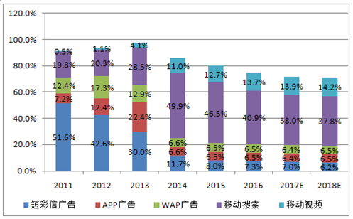 2011-2018E中國移動營銷市場結(jié)構(gòu)